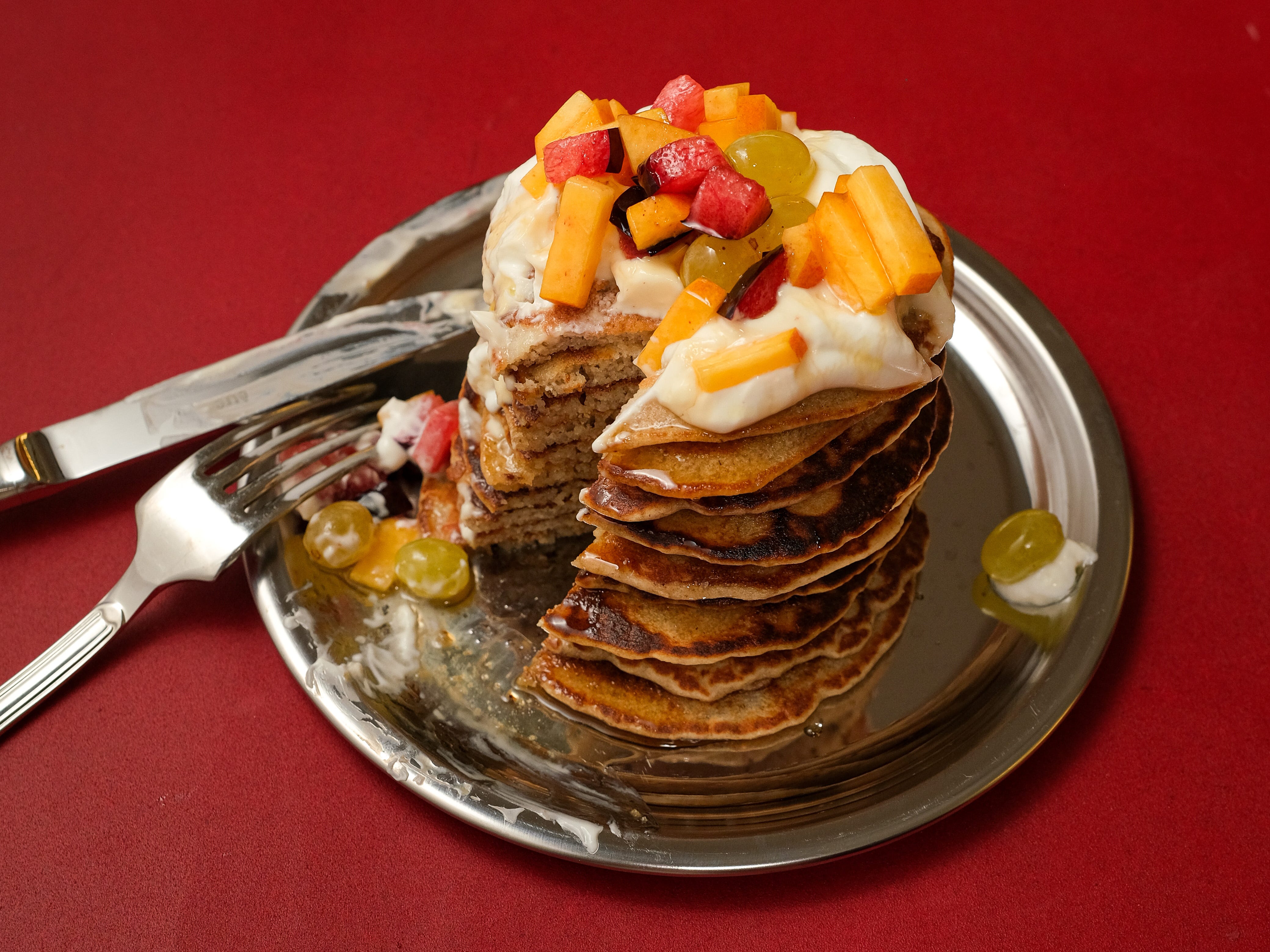 The toppings are flexible and shift with the season: yogurt for creaminess, fruit in whatever form you have, olive oil for depth, and honey to make it sing. These are pancakes you can put on repeat and not regret the next morning.