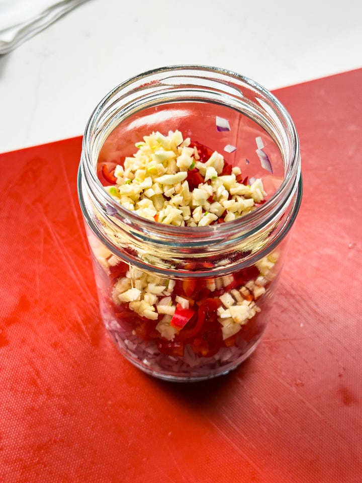 Red onion is optional. It adds a deeper, more savoury edge, which can be great in some contexts. If you’re planning to use this mostly with eggs, toast, yogurt, or butter, you may prefer to leave it out. Try both and see where it fits in your kitchen.