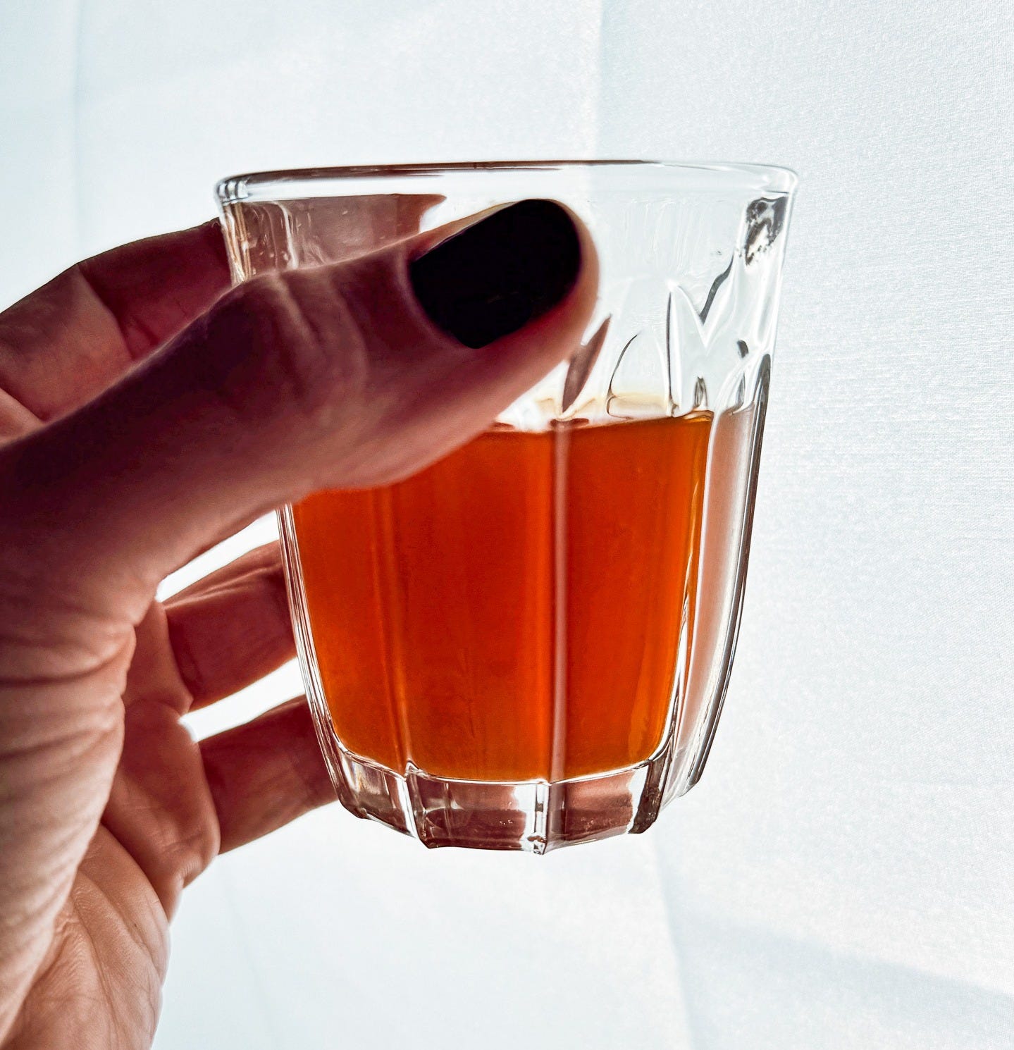 Tatlı ama şekerli değil, baharatlı ama yakıcı değil. Hünnapın doğal karamelimsi tadı, goji berry’nin hafif meyvemsiliği, zencefilin ve tarçının ısıtan aromasıyla birleşiyor. Ne tamamen tatlı, ne tamamen baharatlı… Hafif ama kendini hissettiren, hem rahatlatıcı hem de enerjiyi dengeleyen bir çay. Damakta kendine özgü, unutulmaz bir tat bırakıyor.