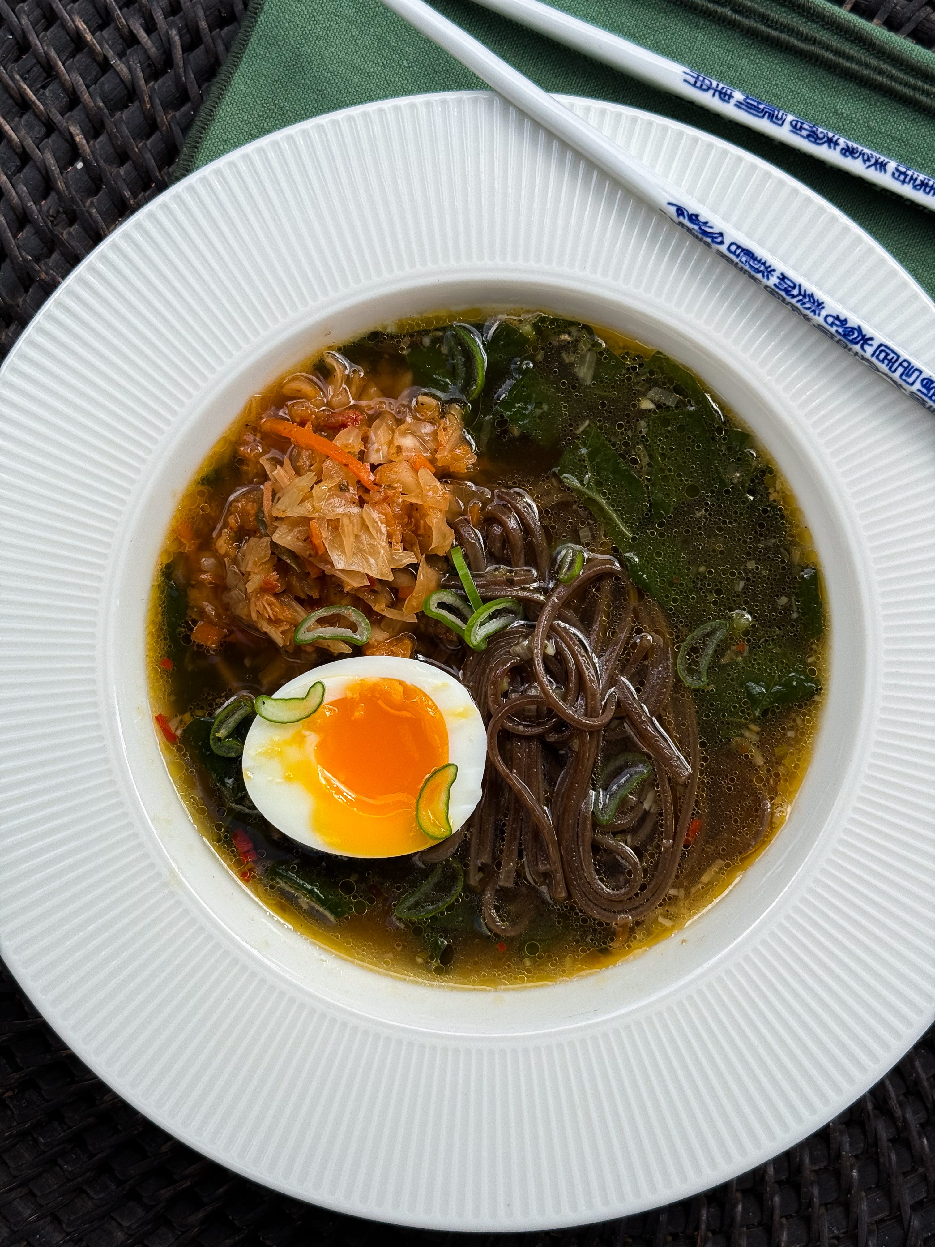 Asya mutfağından ilham alan, yapımı kolay ve çok lezzetli bir noodle çorbası. Mantar, soya sosu, fish sauce ve kombu gibi umami katan malzemeler sayesinde kısa sürede hazırlayıp derin tatlar yakalayabilirsiniz.