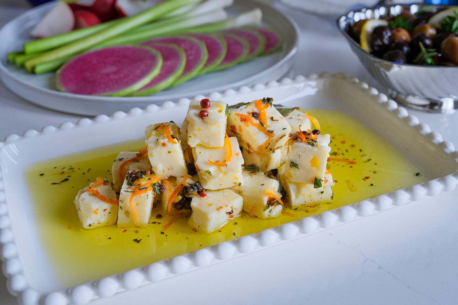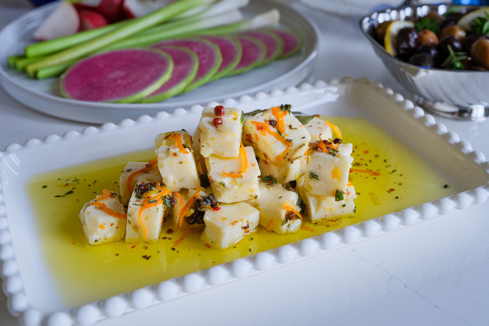 There’s always white cheese. Usually served plain, maybe with a drizzle of olive oil or a pinch of thyme. This version asks for just a little more attention. A few spices, some citrus zest, and time in good olive oil. The kind of thing you can make ahead, forget about, and then serve like you planned it all along.