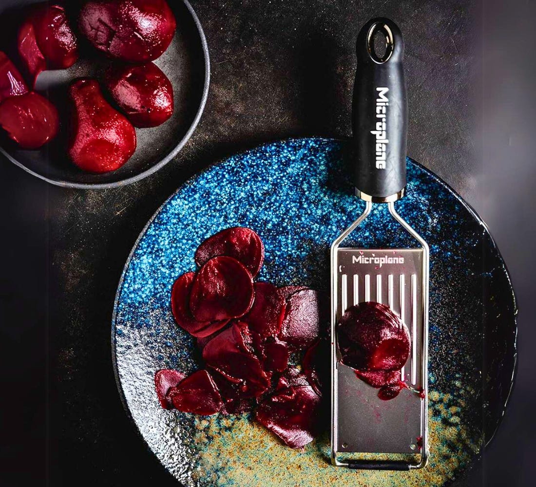 I use this Microplane mandoline all the time. It doesn’t take up space, doesn’t need extra parts, and doesn’t make you fuss with settings. There’s just one thickness—and for most things at home, that’s more than enough.